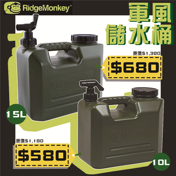 【大山野營】英國 RidgeMonkey CAMP-10L 軍風儲水桶 10L 手提桶 手提水箱 露營 釣魚 野營