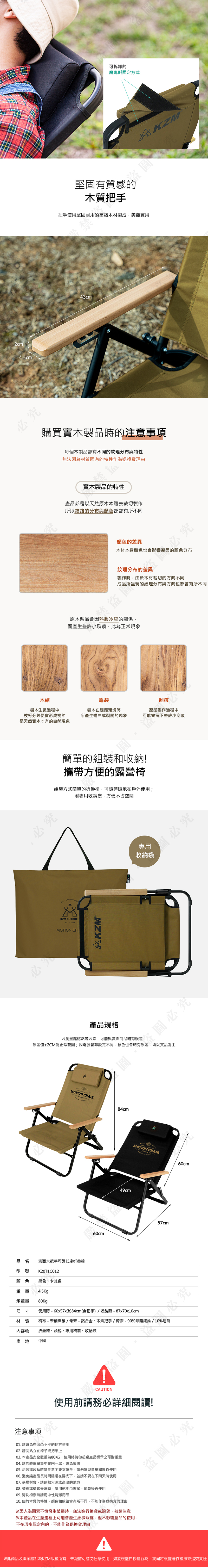 【大山野營】KAZMI K20T1C012 素面木把手可調底座折疊椅 四段可調 摺疊椅 休閒椅 露營椅 戶外椅 野餐 野營 露營